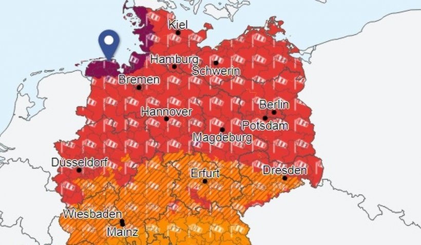 A fost emis cod violet de vânt foarte puternic, cu rafale asemănătoare unui uragan. Germania este singura țară europeană în care s-a instituit o alertă Cod Violet, superioară celui Roșu. Avertizarea meteo vizează regiunile din nord-vestul Germaniei, care au fost plasate, vineri, sub alertă Cod Violet pentru vânt năucitor, cu forța unui uragan. Meteorologii estimează că rafalele de vânt vor avea o viteză între 120 și 160 de km/h.