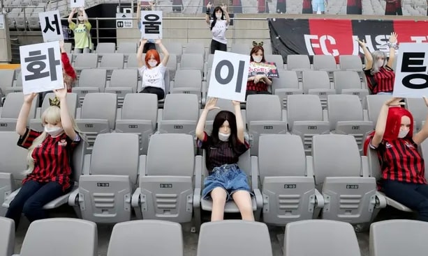 Întrucât pe fondul pandemiei competițiile sportive se desfășoară momentan fără spectatori, la recomandarea autorităților, un club de fotbal din Coreea de Sud a fost mai cu moț și a venit cu o idee năstrușnică. Fără să se gândească la consecințe. S-a întâmplat la meciul dintre FC Seoul și Gwangju, din campionatul sud-coreean de fotbal. Gazdele de la Seoul s-au gândit să suplinească absența fanilor din tribune cu… păpuși gonflabile. Deși și-au cerut scuze, nu au scăpat de amendă. Oficialii clubului au susținut că nu au verificat dacă furnizorul le-a trimis ceea ce trebuie și nu și-au dat seama că erau produse pentru adulți.