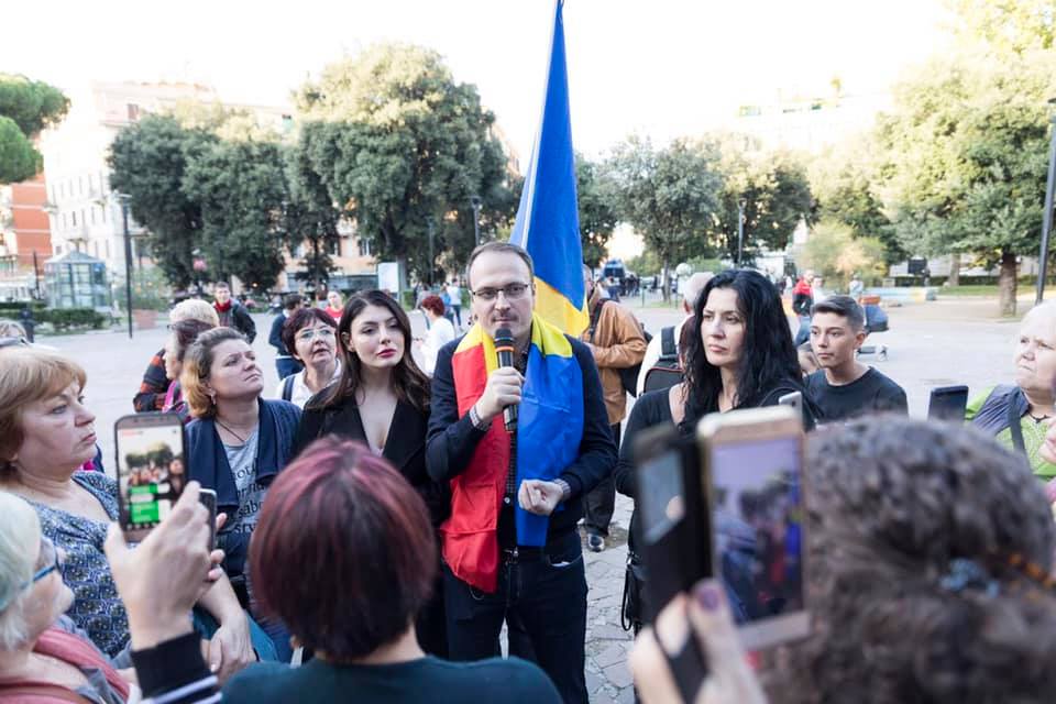 Alexandru Cumpănașu, înconjurat de simpatizanți români din Italia
