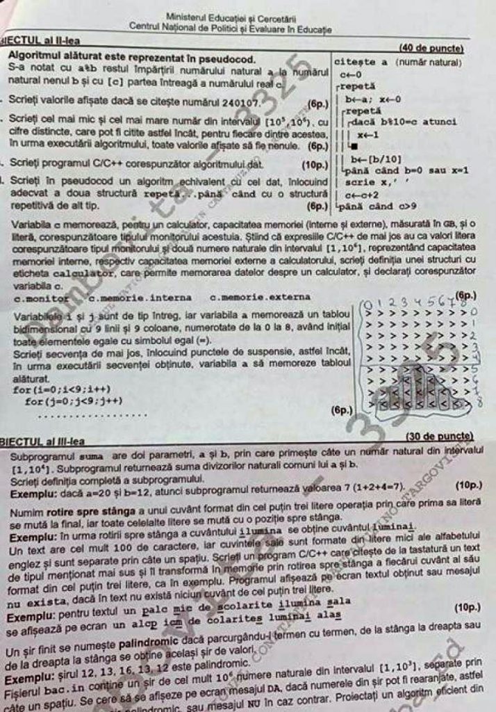 Update, ora 14:10– Au fost publicate subiectele la Informatică.