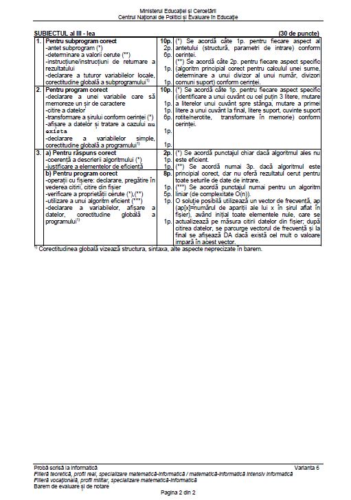 Update, ora 15:29- Baremul pentru subiectele de la informatică poate fi consultat mai jos.