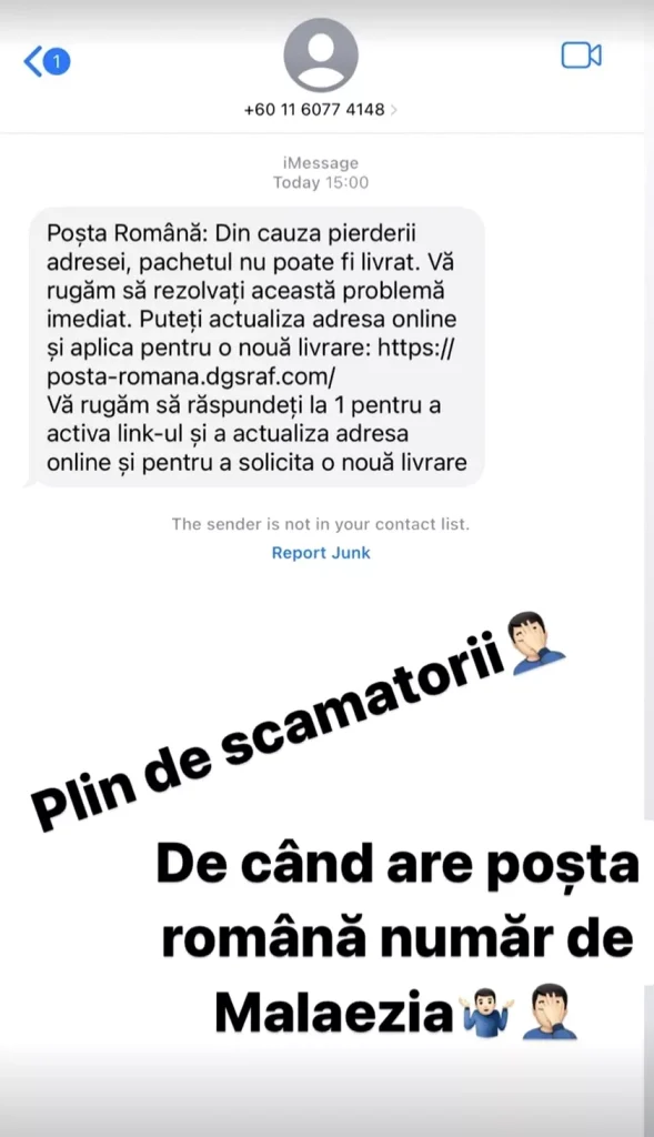 ”Plin de scamatorii! De când are poșta română număr de Malaezia. Încercați, oameni buni, alte şmecherii să prostiți oamenii. Păi poşta română are nevoie de o săptămână să livreze între 2 județe.