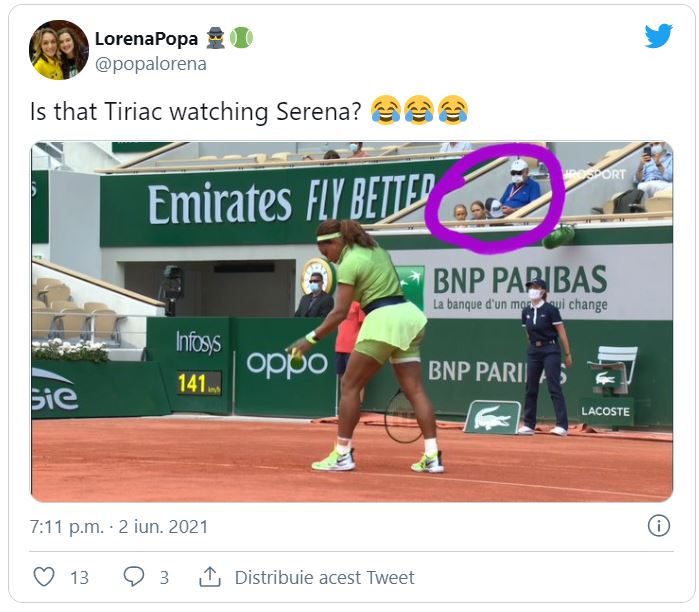 Turneul de la Roland Garros continuă în aceste zile cu un număr limitat de spectatori în tribune, însă o imagine face înconjurul planetei în acest moment. Ion Țiriac a fost surprins lângă Serena Williams, în timpul partidei din turul 2 pe care jucătoarea americană a disputat-o contra româncei Mihaela Buzărnescu. După un meci mai echilibrat decât se aștepta, Serena s-a impus în 3 seturi, scor 6-3, 5-7, 6-1. Este a doua româncă pe care campioana americană a scos-o din competiție. În primul tur, „victimă” i-a fost Irina Begu, pe care a învins-o în doar două seturi, 7-6, 6-2.