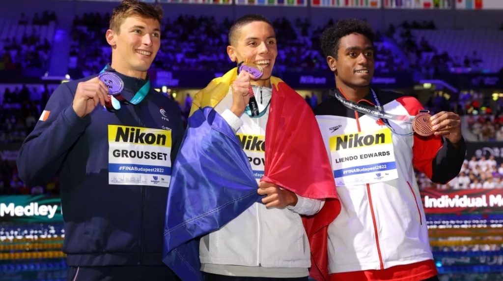 „Maxime Grousset a câștigat medalia de argint miercuri la 100 metri liber la Campionatele Mondiale de la Budapesta. Francezul a fost întrecut de românul David Popovici (17 ani). Am visat la aur pentru Maxime Grousset, 23 de ani, la 100 de metri liber, dar el a câștigat argintul.