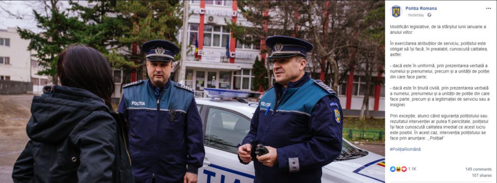 „Mă uimiți cu aceste reglementări! Eu am absolvit scoala de poliție în 1994 și exact la fel am fost instruit să mă prezint sau să mă legitimez! Care este noutatea?”, comnetează un internaut pe pagina de Facebook a Poliției Române.
